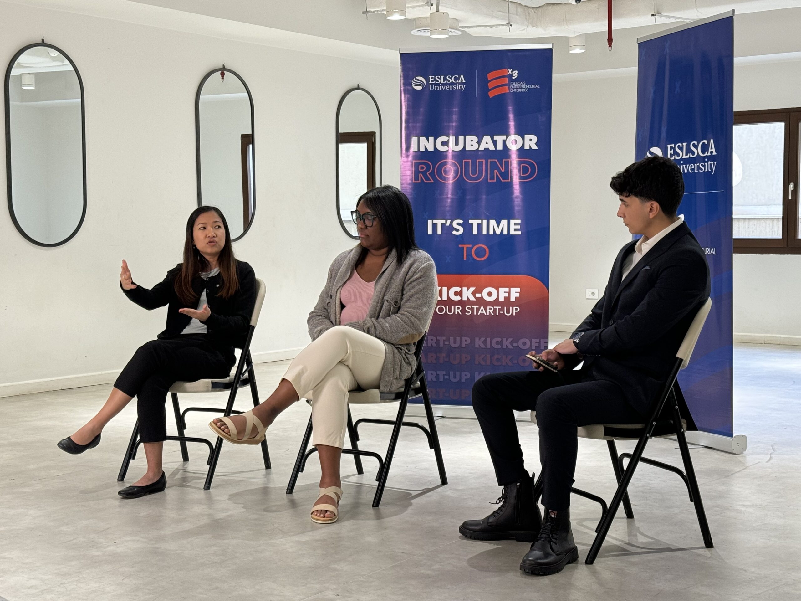 Dalin and Maria speaking at an incubator workshop at ESLSCA University (Egypt).